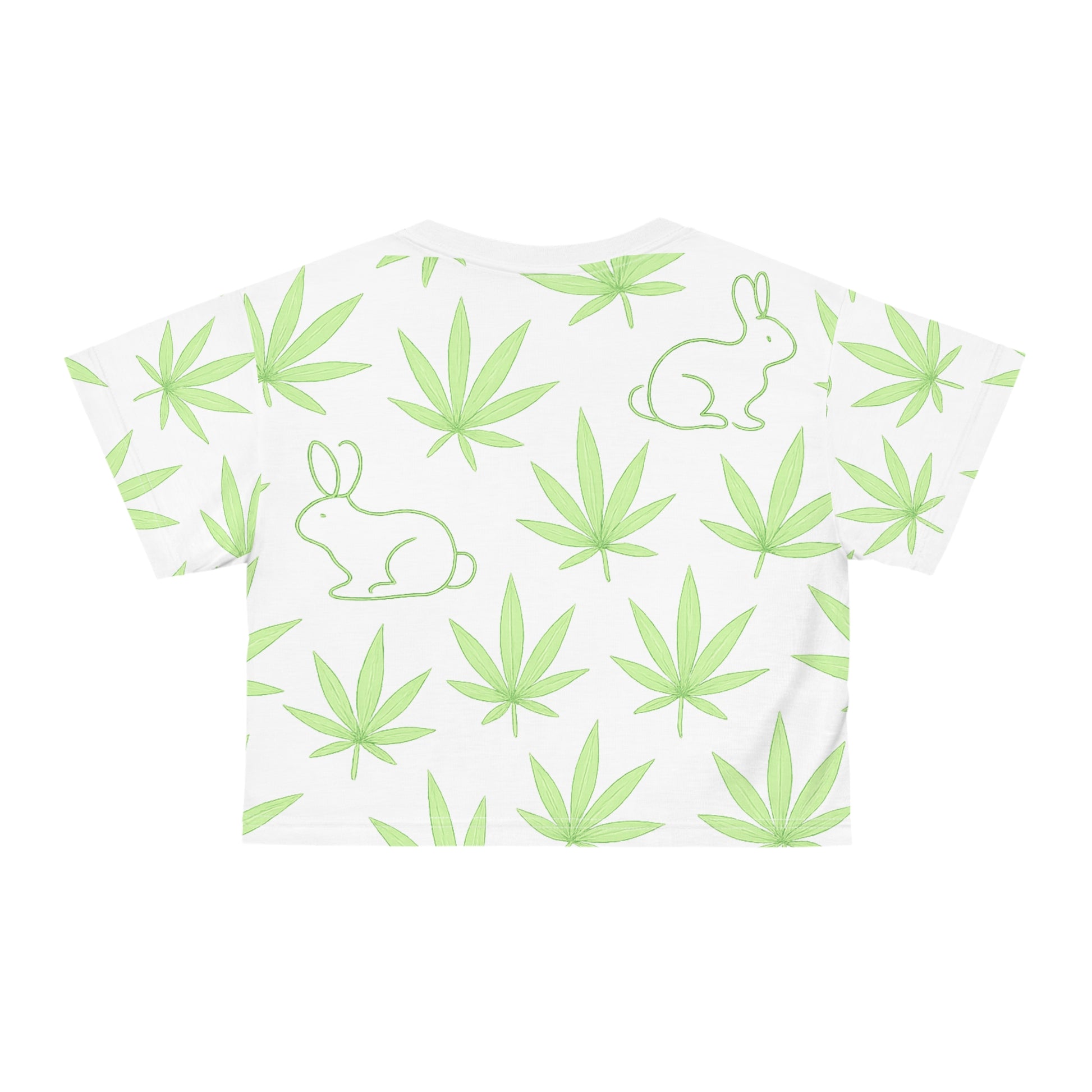 She’s flirty. She’s floaty. She’s giving “I rolled this joint and slayed this outfit before noon.” The All-Over Cannabis Print Crop Tee is your new go-to for high-vibe days, snack runs, and serving looks that say “legalize luxury.”